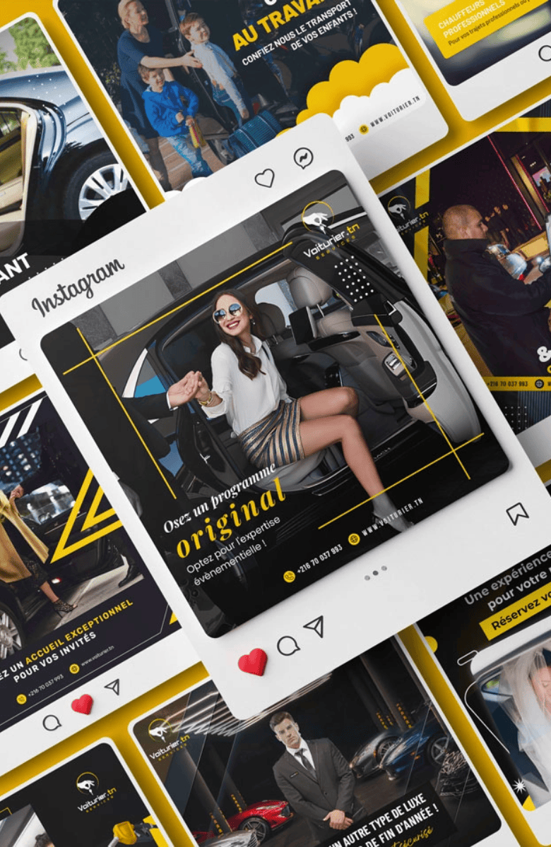 Afin d’accompagner voiturier.tn dans son besoin de digitalisation, nos experts en community management ont réussi à exporté une identité de luxe sur les réseaux à travers la rédaction des messages clés adaptées, une ligne éditoriale claire, un calendrier planifié avec des thématiques qui anticipe les attentes des abonnées et fans et qui suscite l’intérêt des prospects. Notre équipe CM collabore avec la direction artistique pour que chaque publication soit visiblement impactant et favorise le maximum des interactions.